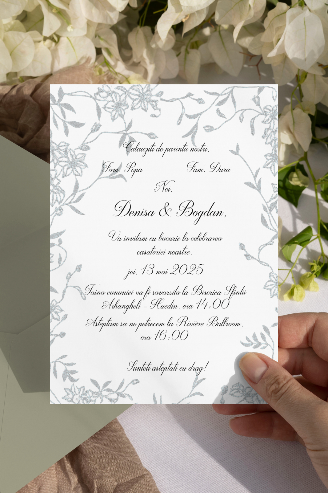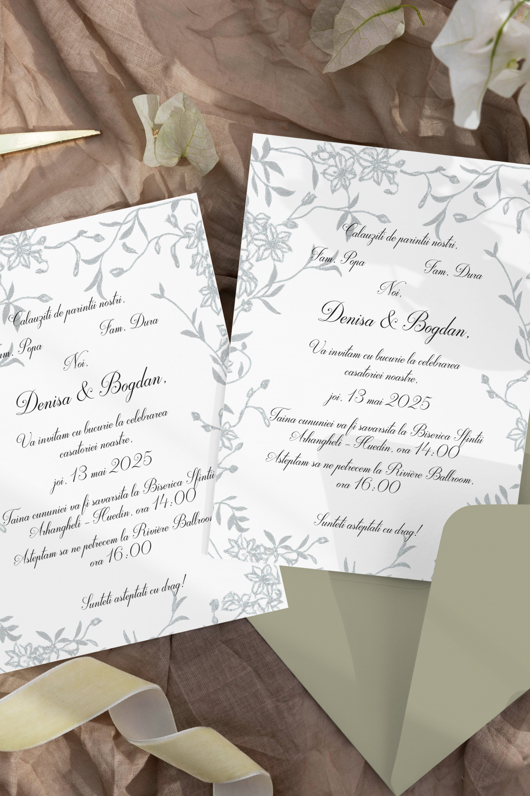 Colecția Classy îmbină grația clasică cu detalii sofisticate, într-o selecție de invitații care pun în valoare momentele cu adevărat speciale. Design echilibrat, cu accente subtile și fonturi cursive, inspiră rafinament și eleganță.