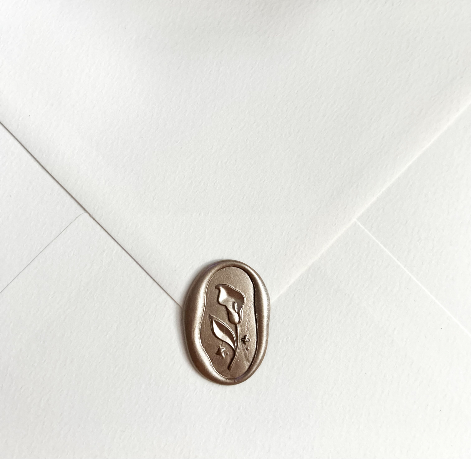 Sigiliu din ceară 'Calla' cu diametru de 2,5 cm, disponibile în mai multe nuanțe (la cerere).