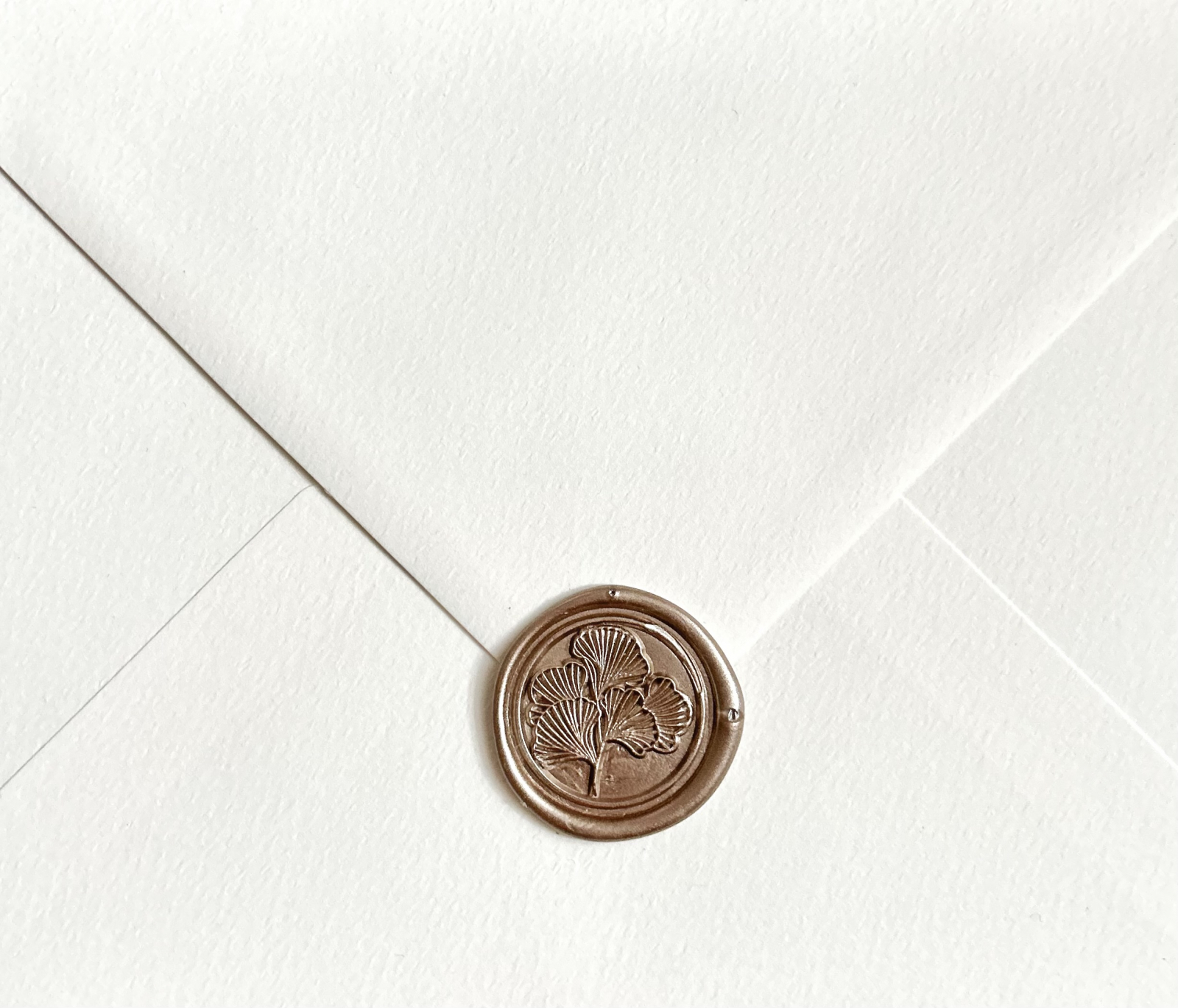 Sigiliu din ceară 'Gingko cu diametru de 2,5 cm, disponibile în mai multe nuanțe (la cerere).